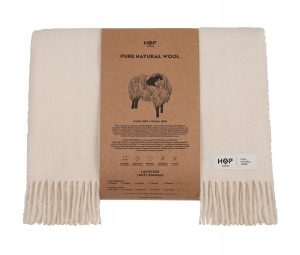 Koc Yeti HOP Design z wełny 155×205 Kremowy EU
