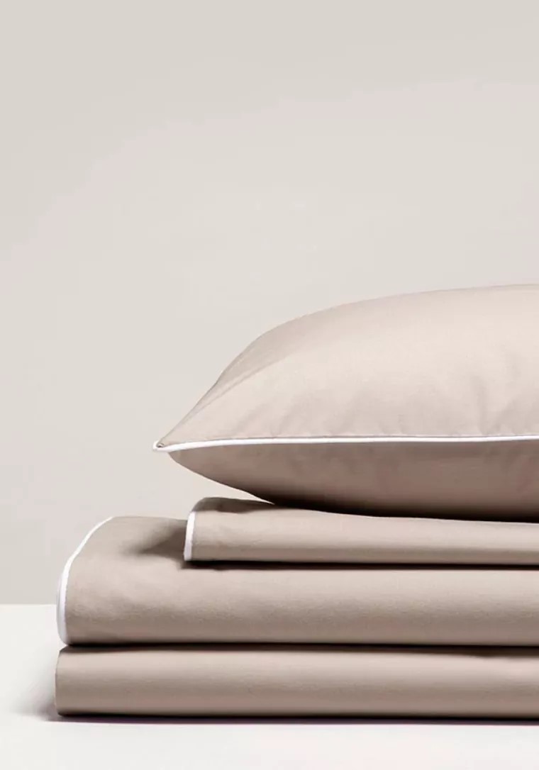 Pościel satynowa SAN ANTONIO latte beż z białą lamówką 140×200 MARO HOME